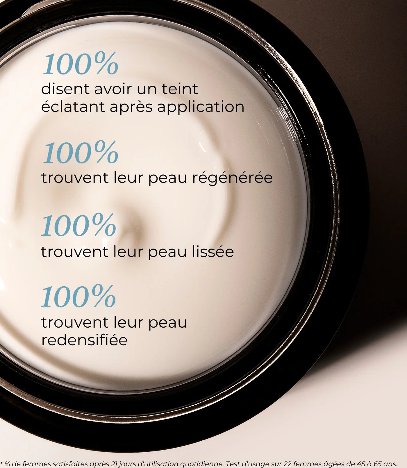 * % of women satisfied after 21 days of daily use. Usage test on 22 women aged 45 to 65.