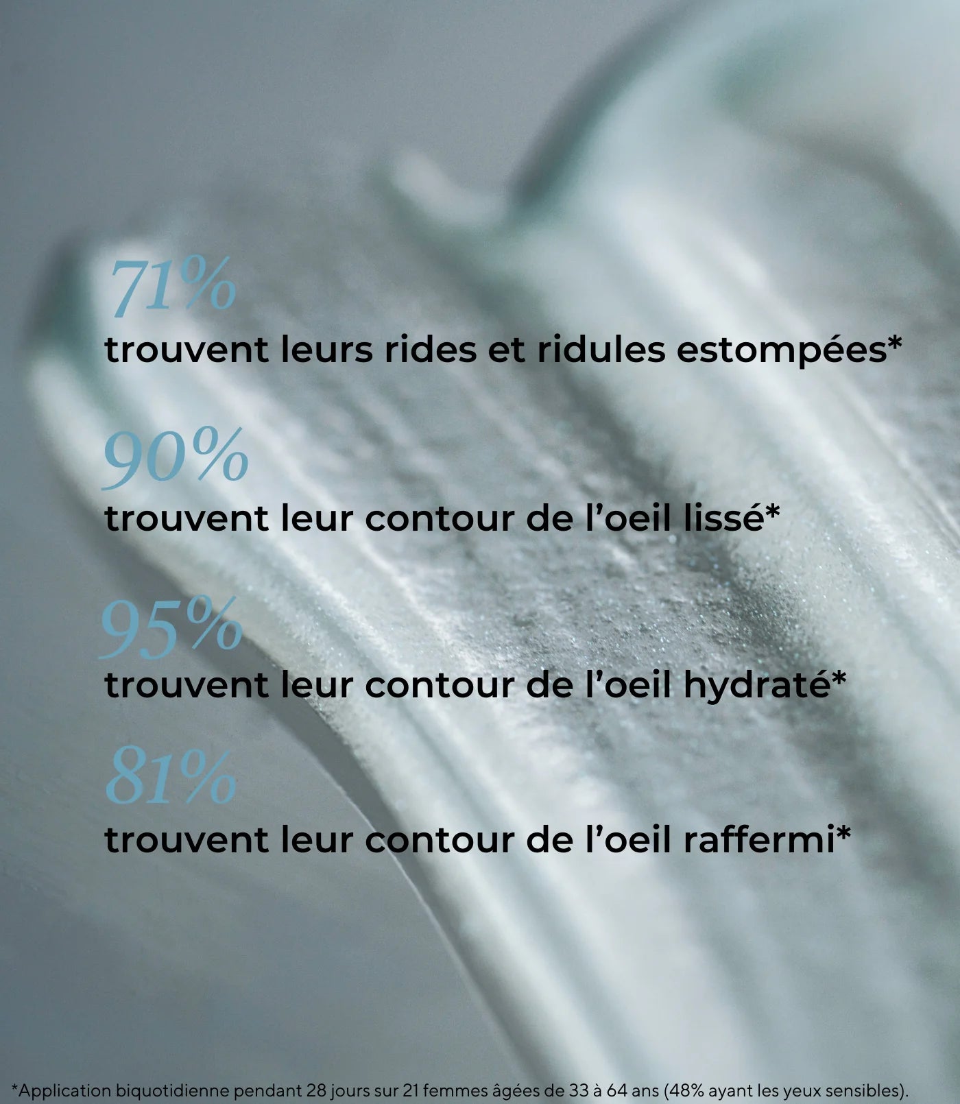 Morning and/or evening, apply to the contour of cleansed eyes with light strokes. Finish with your eyes closed by placing your index finger under the fringe of the eyelashes and go up towards the upper eyelid for an "eyelash curler" effect.